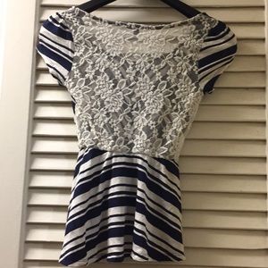 Cute blue and white top. Lace back. Petite