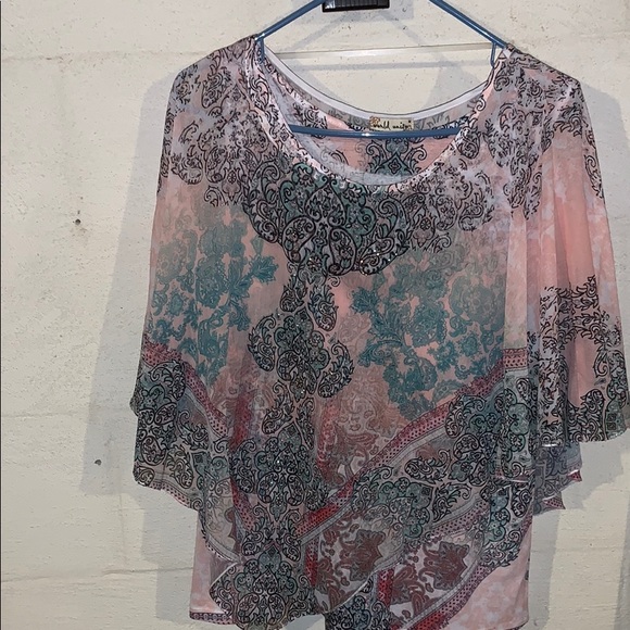 Cute & flirty top, has some bling to it. Attached tank top underneath . Good condition