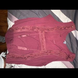 Maroon-ish top with cute design down side with two tassels hanging down