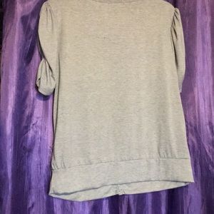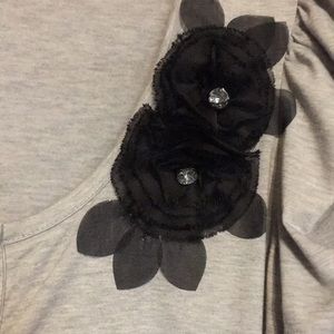 Very cute top the sleeves are gathered and has a cute set of black flowers with embellished centers