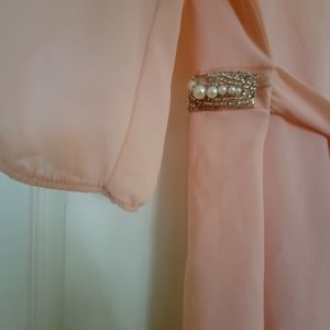 Cute top, color peach. Has cute faux pearls and beads in the front. Used, in good condition. Doesn't have the size tag, but it is L.