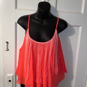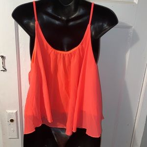 Cute fluorescent top that flares and has shingles in front of it
