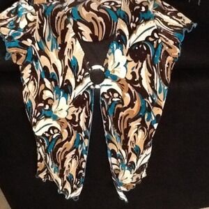 Brown, teal, beige, cream top with attached tank inset.