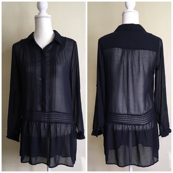Hi Sherrie, it's sheer navy blue (picture is true to actual color). The tunic is in like new condition.