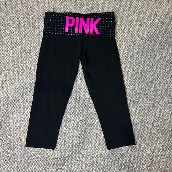 Cute vintage y2k VS PINK low rise fold over logo polka dot capri leggings 🩷