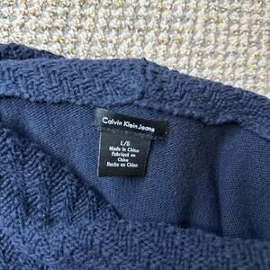 Cute vintage y2k navy blue off the shoulder chunky cowl neck sweater