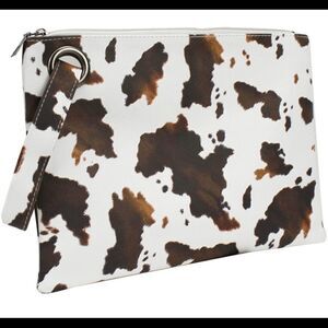 Cute wristlet Cow Print Pattern Tan and Cream and Dark Brownish Black