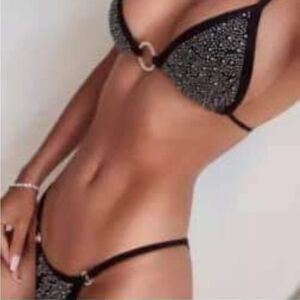 New black bikini with sparkling jewels. Top has very little padding. Bundle and save ✨️ bc POSH takes 20%.