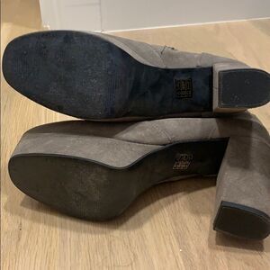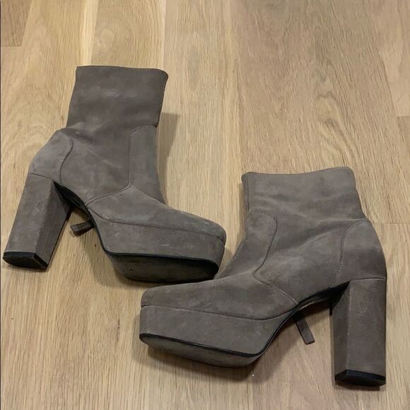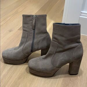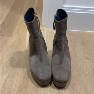 Faux Suede Taupe/Grey Ankle platform booties. Super cute and sooo comfy because of the large platform!