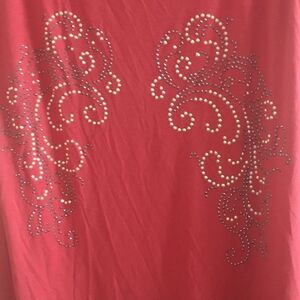 Cute Coral Glitterscape Stud & Lace Top Sz M