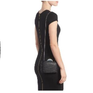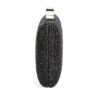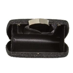 The lift lock closure and alluring crystal beaded exterior makes this minaudiere a must have for upcoming wedding season. Tiny crystals catch the light on this stunning clutch outfitted with an optional drop-in chain strap.