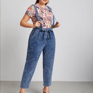 Ladies super cute medium stonewash denim overalls with sash. New with tags. Ladies size 4X. Please refer to size chart for measurements.