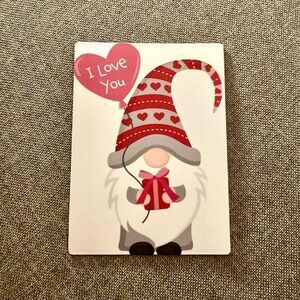 New. Cute Valentine's Day "I love you" gnome magnet. 5.5x4". High quality graphic and strong enough to hold notes and photos. *Reasonable* offers welcome.