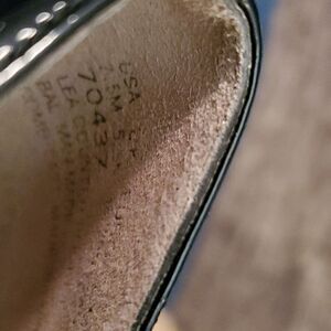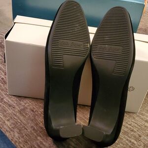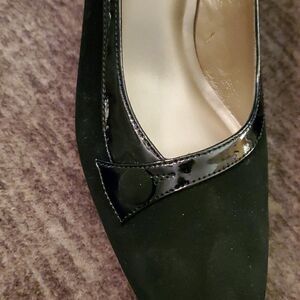 cute women's faux suede with patent leather trim high heels. 2 1/2 inch heel. excellent condition, worn once, size 7.5M