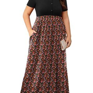 This plus-size floral maxi dress is the perfect blend of style, comfort, and elegance. Featuring a classic empire waist design with a soft, stretchy bodice and a flowing floral-print skirt, this dress flatters all body shapes. The short sleeves and lightweight fabric make it an ideal choice for warm-weather days, while the side pockets add practicality. Whether you're heading to brunch, going on vacation, or attending a casual gathering, this versatile maxi dress pairs beautifully with sandals, heels, or sneakers for a stylish and effortless look.