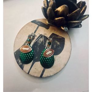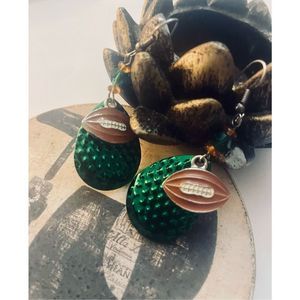 Pretty habd crafted green football earrings. A unique item that is one of a kind. Super stylish. NWT #footballearrings, #dangleearrings, #footballdangleearrings, #bohoearrings, #bohojewelry