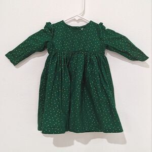 Cuteheads Little Girl's Kelly Green Cotton Flutter Sleeve Dress Gold Star 18-24M