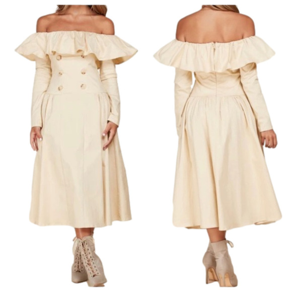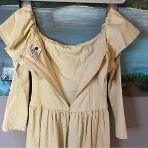 Beige Long Sleeve Off Shoulder Midi Dress
