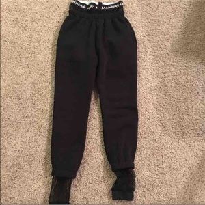 Got a long time ago & never wore & they don't make these sweat pants anymore! Never seen sweat pants like these 😻 mesh net on top to make high waisted, then sweat pant, then mesh net on bottom of leggings.