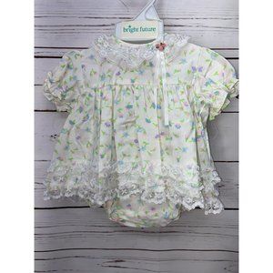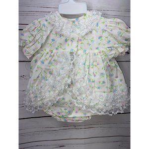 Cutest Ones Vintage Size 12 Months White Floral Print Infant Girls 2 Piece Dress
