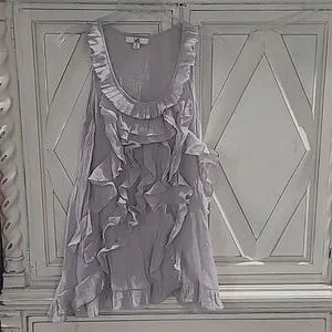 I bought this second-hand with hopes it might be generous to fit my Med-Lg self, but it is probably closer to the small-medium. It is a thin, maybe linen-ish material. Would be great for all seasons depending on pants and layering pieces.