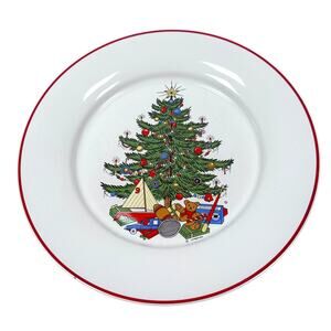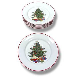 Cuthbertson American Christmas Tree Dinner Plates 10.5" White Red Trim Lot of 6