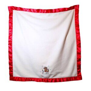 Cutie Pie Rudolph The Red Nosed Reindeer Christmas Cream & Red Lovey Blanket 30" X 29". (B10)