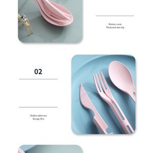 Cutlery Portable Travel Plastic Wheat Material Spoon Fork And Knife Set