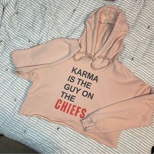 Cutoff hoodie "Karma is the guy on the Chiefs" Taylor Swift peach
