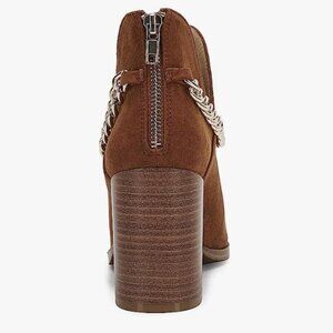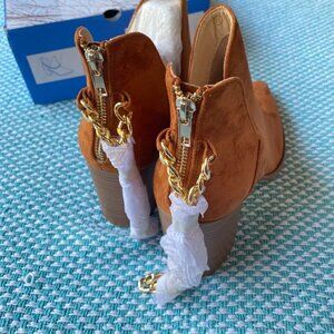 Cutout Booties Chain Pointed Toe Stacked High Heel Back Zipper, Size 9.5