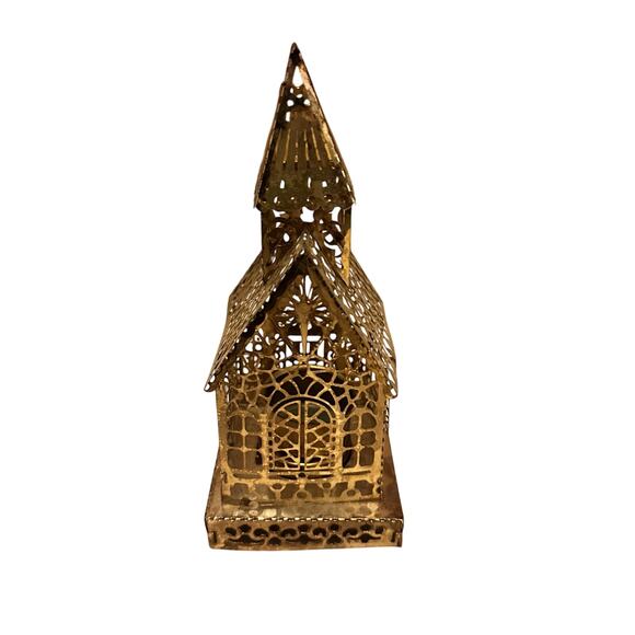 Cutout Brass Shaped Cathedral Church Votive Candle holder Christmas Decoration