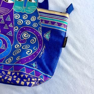 This super fun Laurel Burch canvas printed Indigo Cats Blur Golden Cutout Tote Bag is so full of whimsy! When I was little in the 80’s these bags were very popular and I always loved seeing ladies carry them out in public. They are great as Christmas gifts. The measurements are: