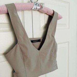 Cute fully lined cropped top with cut out details, v-neck, sleeveless, in a great neutral color