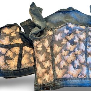 Jean jacket with sheer cutouts! Offered in children's and adult sizes. A great mommy and me gift! All sizes available- just let me know once you order.