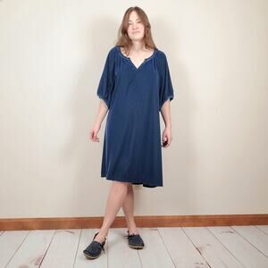 Deep dusty blue or muted navy colored flats that are a cross between a moccasin and a loafer style. Perforated lasercut flower and fern designs at the toe and sides. Navy bow tie laces. May be real leather, may be faux leather - they do not say so I can't be sure. Tan rubber sole with bullseye treads. Brand is unknown. Labeled a Euro size 42, which is about a US women's size 10. Matching stormy blue velvet shift dress is also for sale - see separate listing for the moody monochrome look!