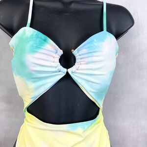 Cutout One Piece Swimsuit Womens Medium Pastel Tie Dye Padded Beachy Summer Vaca