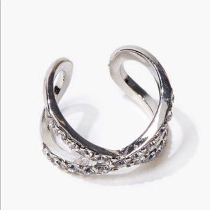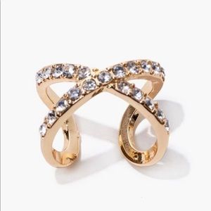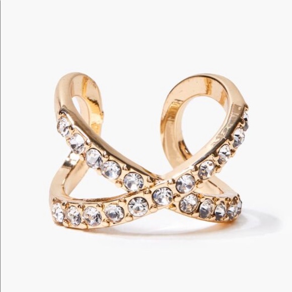 A high-polish ring featuring rhinestone embellishments and side cutouts. - Diameter of ring: 0.75"