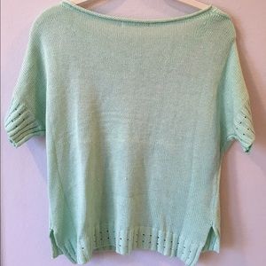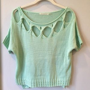 Seafoam green cut-out neckline sweater by Mustard Seed clothing brand