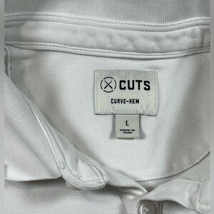 Cuts Clothing Large Curve Hem Slim Fit Classic White Performance Polo Shirt EUC
