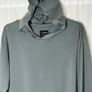 Cuts Elongated Long Sleeve Hooded Curve-Hem Shirt Color Steel XXL Men Gray