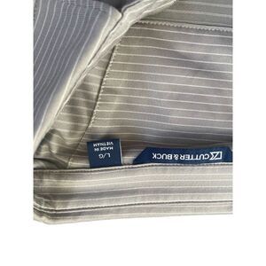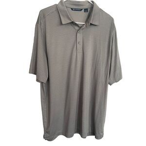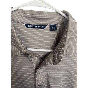 Cutter & Back Mens Grey And White Striped Three Button Short Sleeve Polo Large