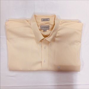 Cutter & Buck 3XLT Button Down - stripe yellow and white- there is a small Nick on the second button from the dry cleaners but I tried to take a pic to point that out closely. Otherwise in very good condition