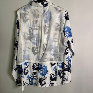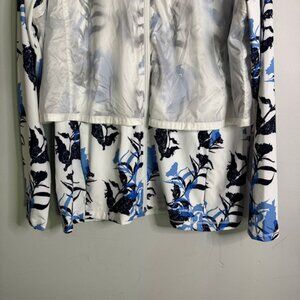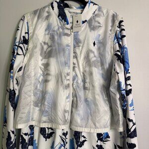 The Cutter & Buck Annika Believe Hybrid Jacket in black with a diamond logo is a stylish and versatile activewear jacket designed for women. Made from spandex material, this short jacket features a floral pattern in blue and white colors, perfect for any season. With long sleeves and a full zip closure, this lightweight jacket offers UV protection and compression for comfort during activities like golf. Additionally, it includes pockets for convenience and is machine washable for easy care. Perfect for winter, summer, fall, and spring, the Believe Hybrid Jacket from Cutter & Buck is a must-have for any woman looking for a quality and fashionable outerwear option.