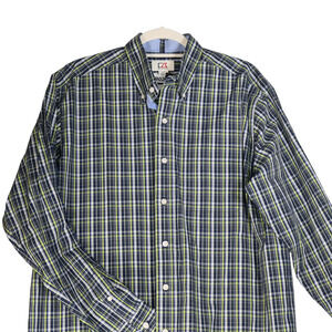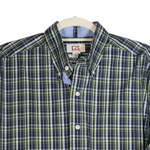 Cutter & Buck Blue Green Plaid Button Down Shirt Mens Size L Cotton Pocket