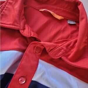 Cutter & Buck CBUK Mens Red White Blue Polo Shirt Size Large Colorblock Golf USA