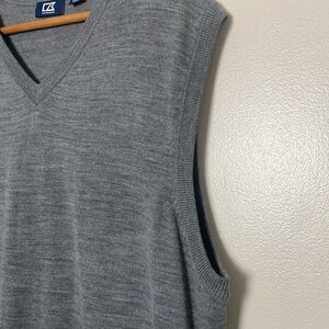 Cutter & Buck Douglas Mens V-neck Vest Merino Wool Blend Gray Size XL