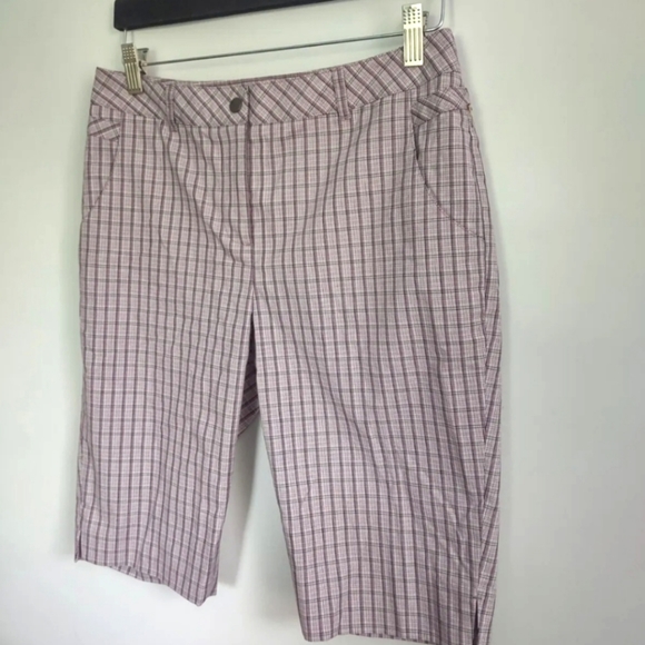 Cutter & Buck Golf Annika Pink Black White Plaid Bermuda Shorts Sz 2 12" Inseam