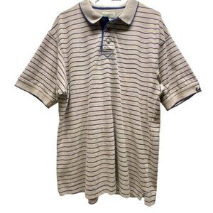 Cutter & Buck Golf Polo Men's LT Large Tall Tan Navy Stripe Short Sleeve (Read)