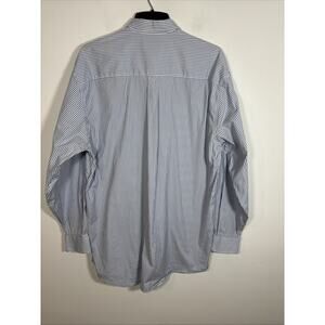 This Cutter & Buck Green Bay Packers Button Front Dress Shirt in size XXL is a classic blue striped shirt made from cotton fabric. It features a button-down collar, long sleeves, and is suitable for various occasions such as travel, casual wear, workwear, or business meetings. The shirt is adorned with embroidered accents and exudes a sports theme, making it a versatile and stylish addition to any man's wardrobe. Perfect for all seasons, this shirt can be worn in winter, summer, fall, or spring with equal comfort and style.