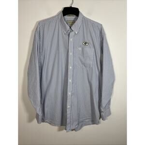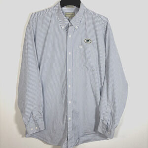 Cutter & Buck Green Bay Packers Button Front Dress Shirt Cotton XXL Blue Striped